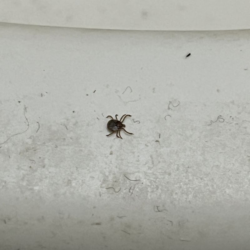 今年(2024年)初めて遭遇した・・・というよりは、家に帰ってきて風呂に入っている時に腕に喰らいついているのを初めて目の当たりにしたマダニ。