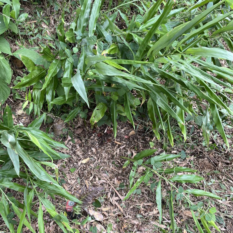 聞いた話ではミョウガはミョウガの葉っぱの下の地面を軽く掘って収穫するとのこと。草刈り(刈り倒し)の時に一緒に引きずり出していなければきっとあるはず。