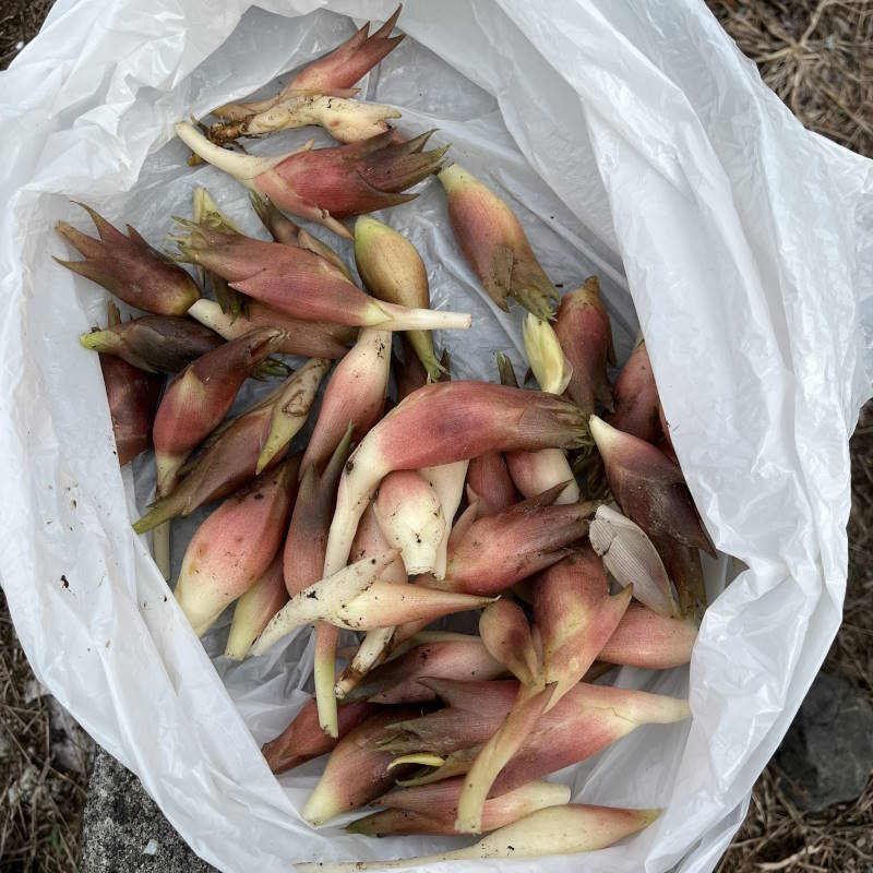 一部は花が咲いていたり、溶けた?もの(スカスカのフニャフニャになったもの)がありましたが、ほとんどはスーパーで3個入り158~198円くらいで売られているミョウガと同じようなサイズでした。