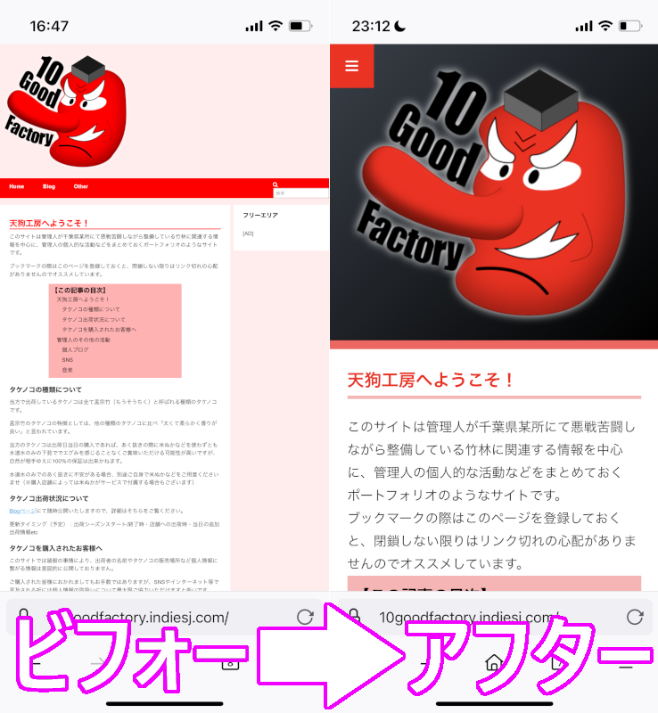 本来であれば先にトップのロゴを作り直す方向で考えていたのですが、ふと気になってスマホからアクセスした時の見え方を調べてみたところとんでもない問題が発覚!