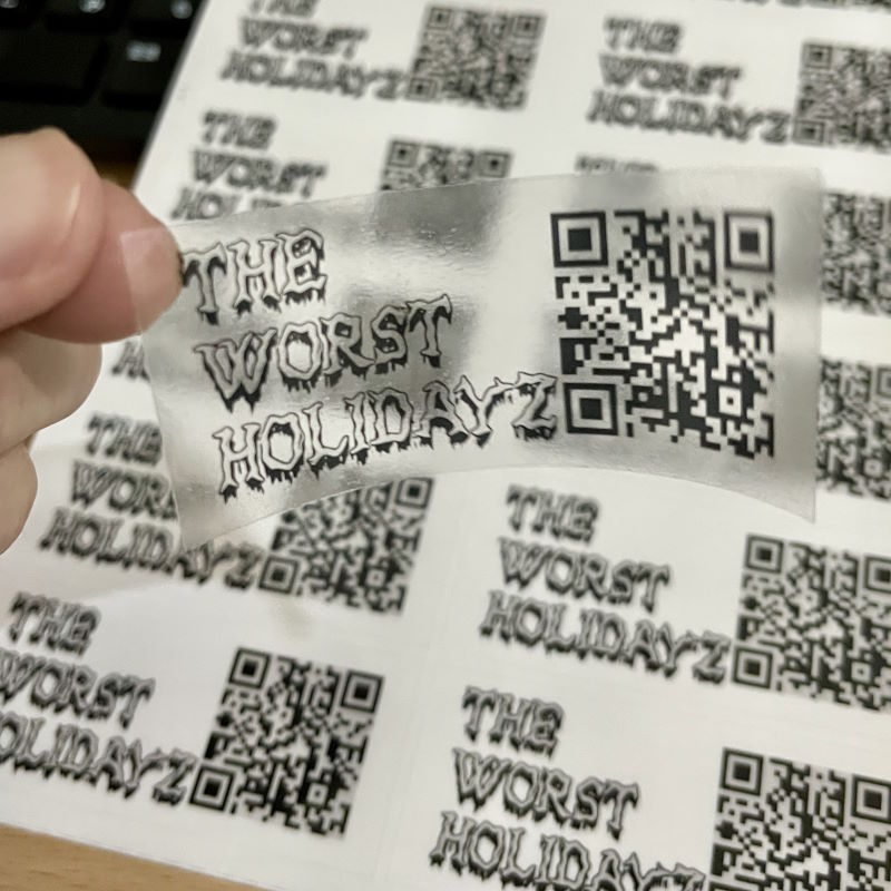 印刷部以外は透明のステッカーですので、黒っぽくない場所でご使用ください。